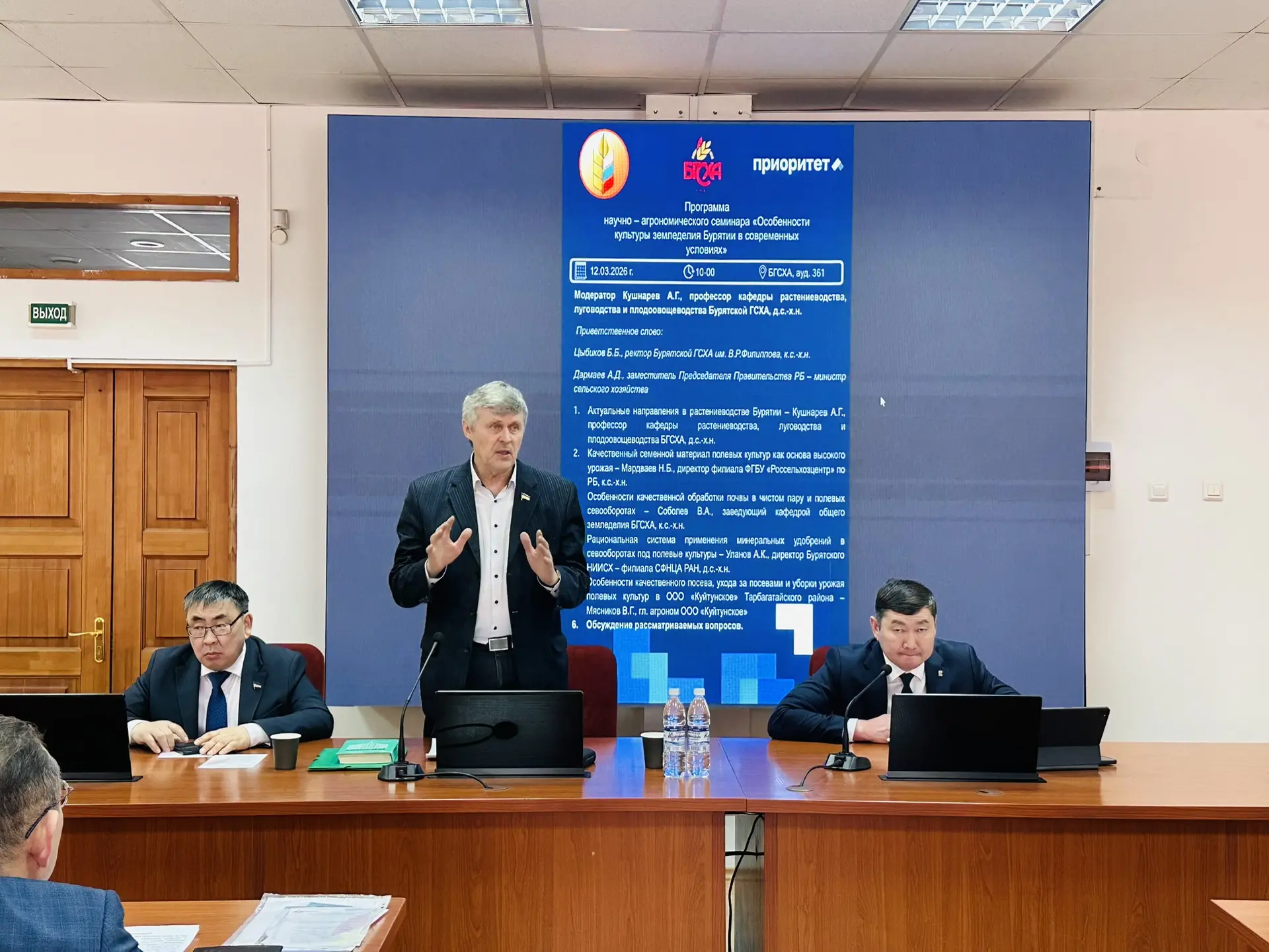 12 марта в Бурятской государственной сельскохозяйственной академии имени В.Р. Филиппова прошел научно-агрономический семинар «Особенности культуры земледелия Бурятии в современных условиях». Мероприятие собрало ведущих специалистов, ученых и практиков аграрной сферы, которые обсудили ключевые направления и современные проблемы в области сельского хозяйства.