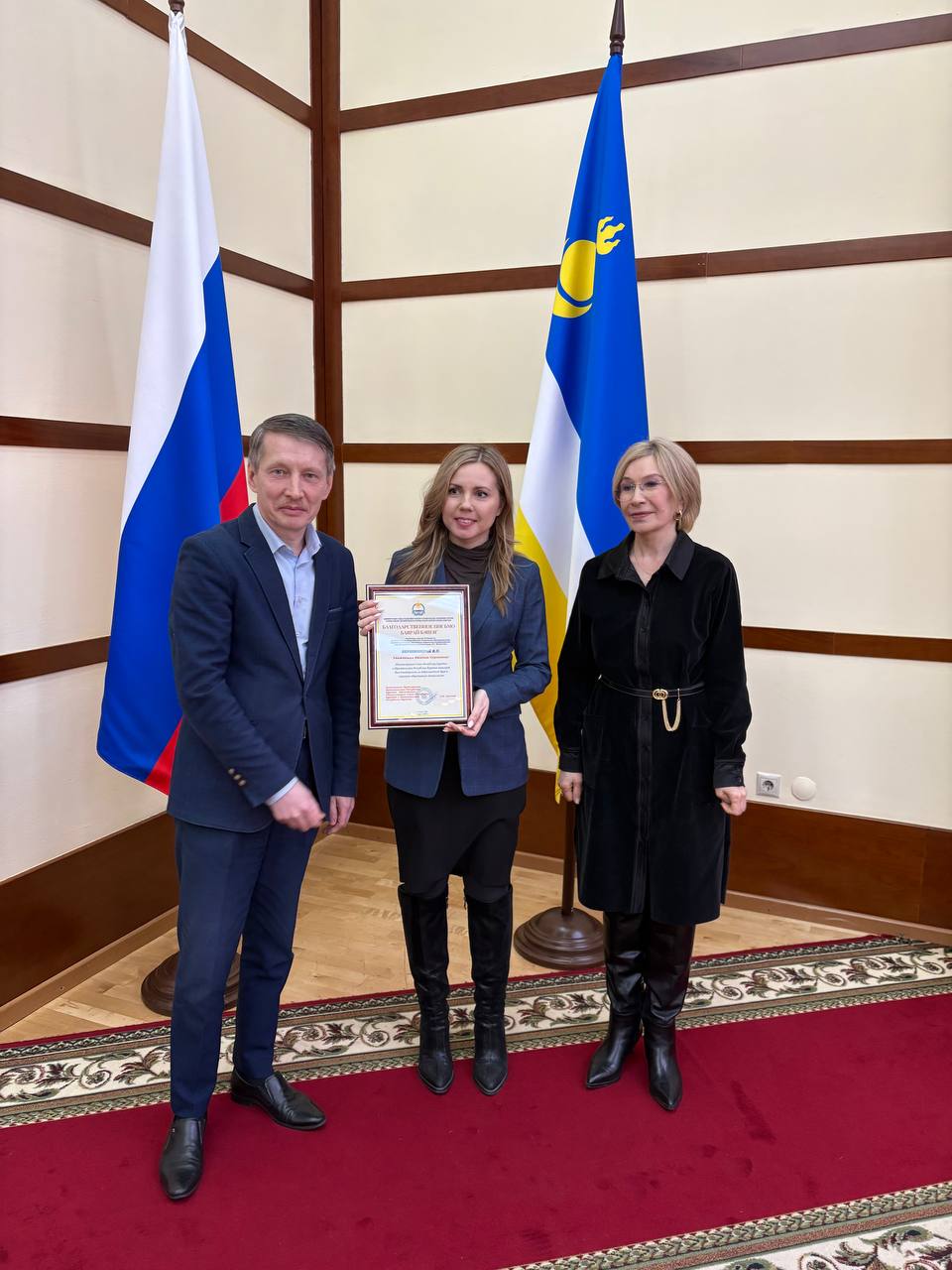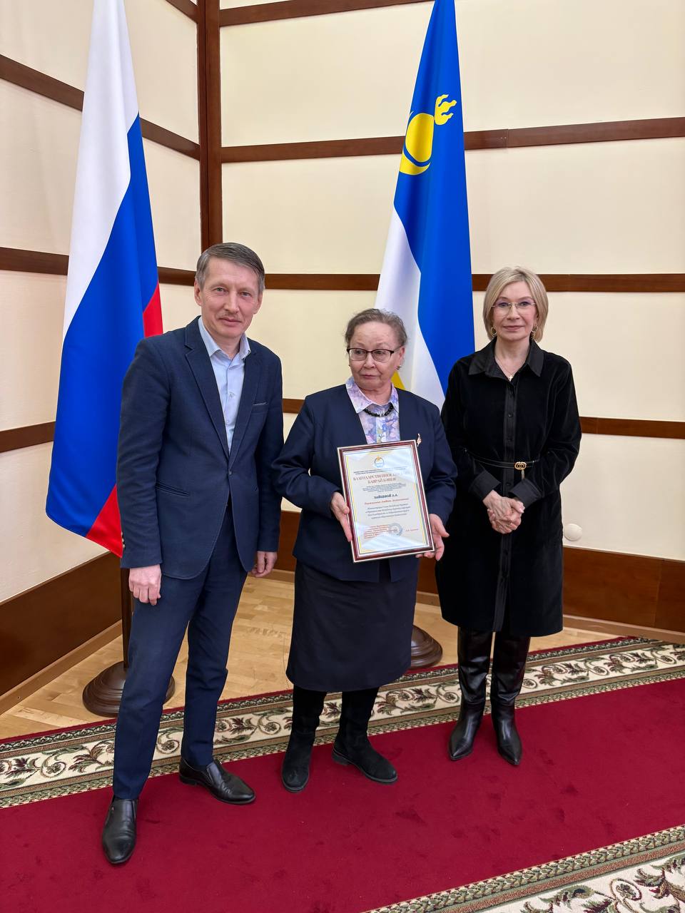 По завершении обсуждения состоялась церемония награждения благодарственными письмами Главы Республики Бурятия, Администрации Главы и Правительства Республики Бурятия активных участников подготовки юбилейных мероприятий. Отмечены, в частности: