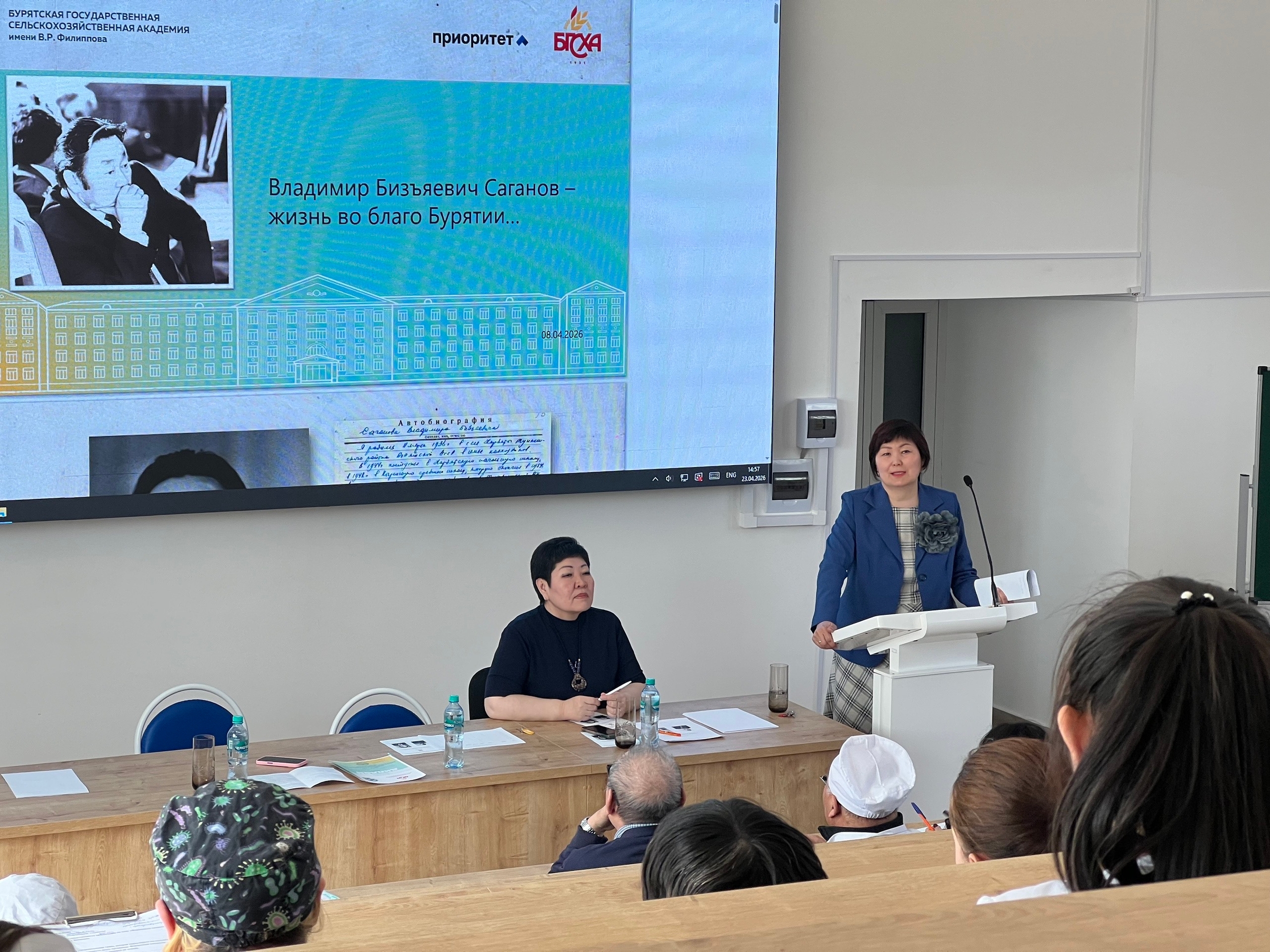 Научная часть была насыщена содержательными докладами. Прозвучало трогательное выступление Лопсона-Доржо Владимировича Хибхенова с докладом «Учитель», посвящённым роли наставничества в формировании личности профессионала. Научное наследие профессора В. Р. Филиппова осветил в своём докладе профессор Пётр Бадмаевич Цыремпилов. Жизненный путь и многогранный вклад Владимира Бизьяевича Саганова в развитие Бурятии были представлены в докладе проректора по развитию Баирмы Сергеевны Гыргеновой.